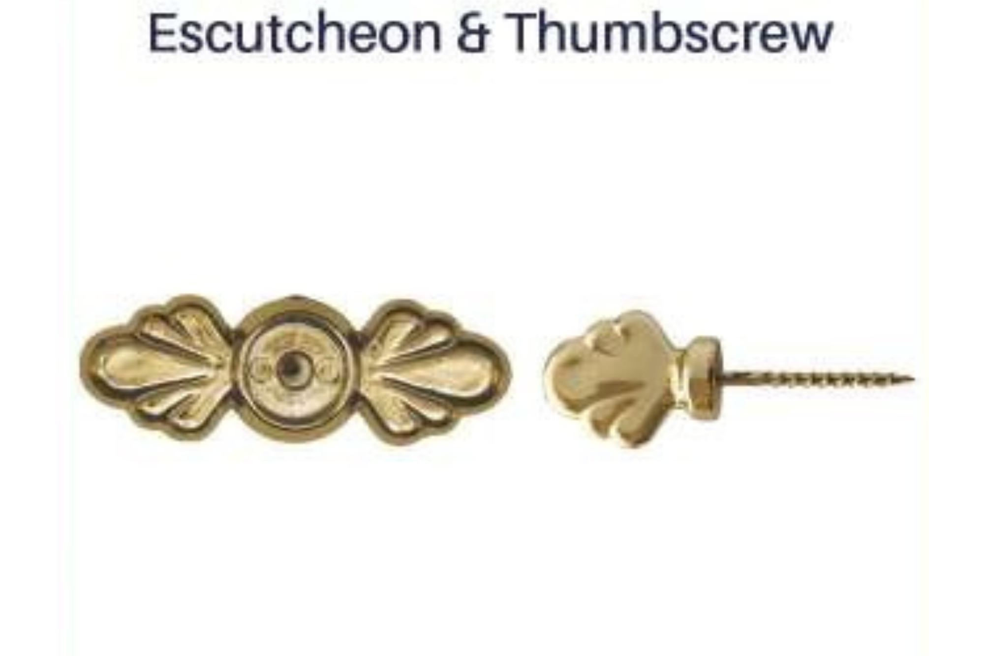 Escutcheon size: 75mm Thumbscrew size 75mm Colours: Bronze, silver, gold